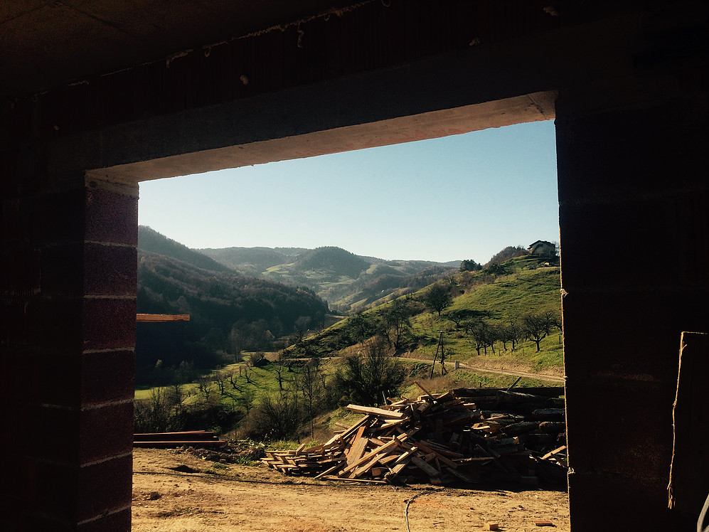 Okna, dimenzij 240 x 240 cm odpirajo poglede na lepo pokrajino okoliških hribov. Velika okna so nepogrešljivi vir svetlobe. Sledi vgradnja oken, ki bodo v les-alu izvedbi.