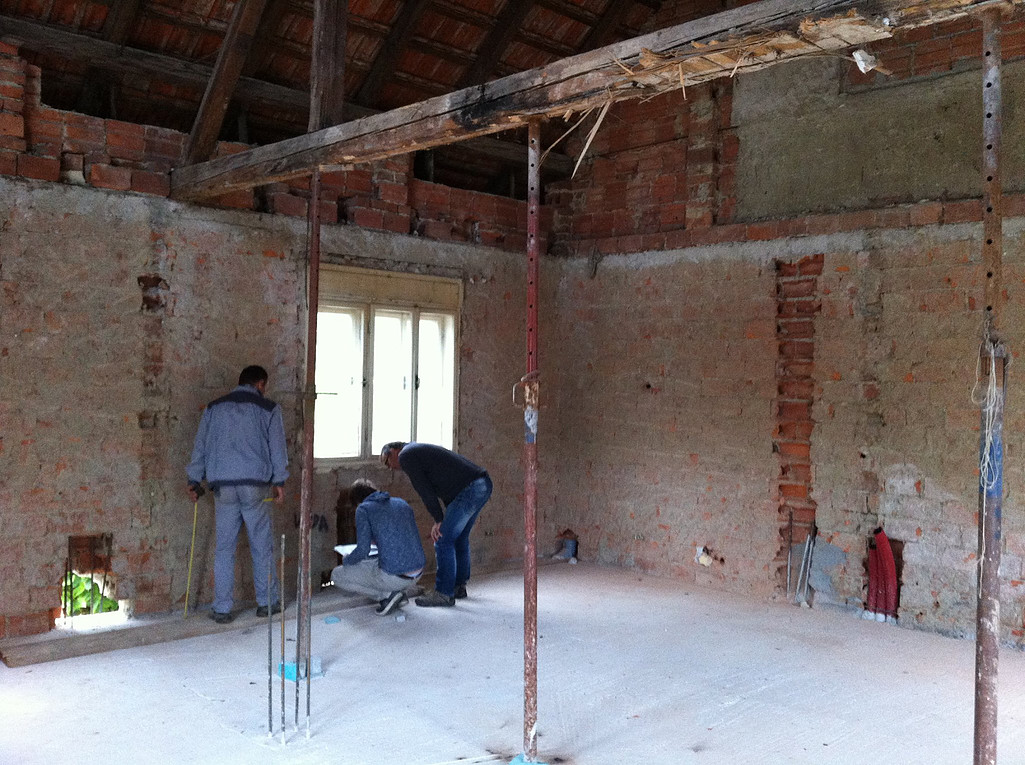 Idejna zasnova prenove hiše, projekt za rekonstrukcijo objekta, delna ruišitev in izvedba nove talne plošče ter vertikalnih AB vezi za statično utrditev stare hiše.